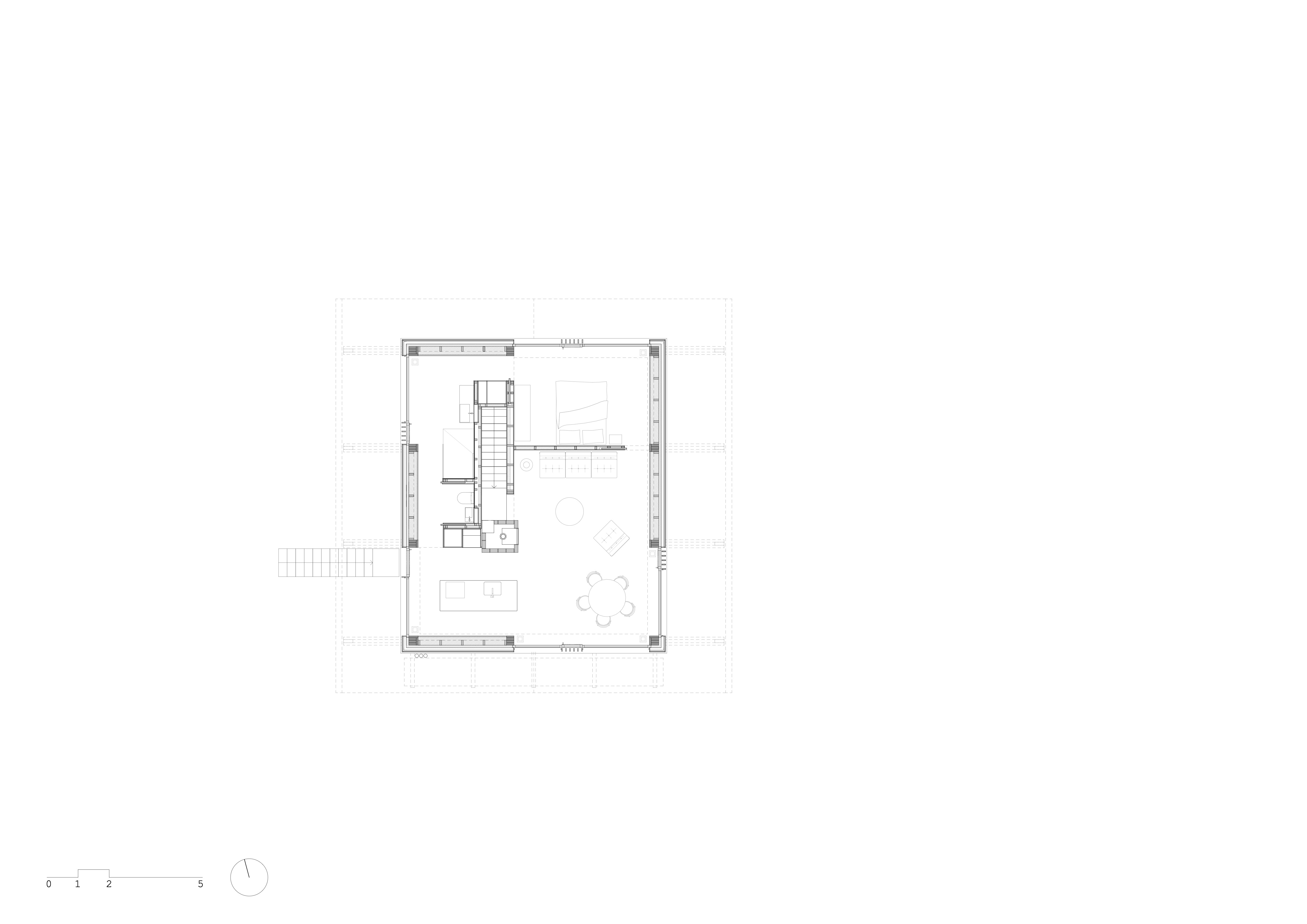 Erigée sur pilotis, la première partie semble comme une "boîte suspendue" et son enveloppe thermique initiale offre 80m2 de surface, alors que la deuxième phase permet 60m2 supplémentaires, sans grands travaux et frais.