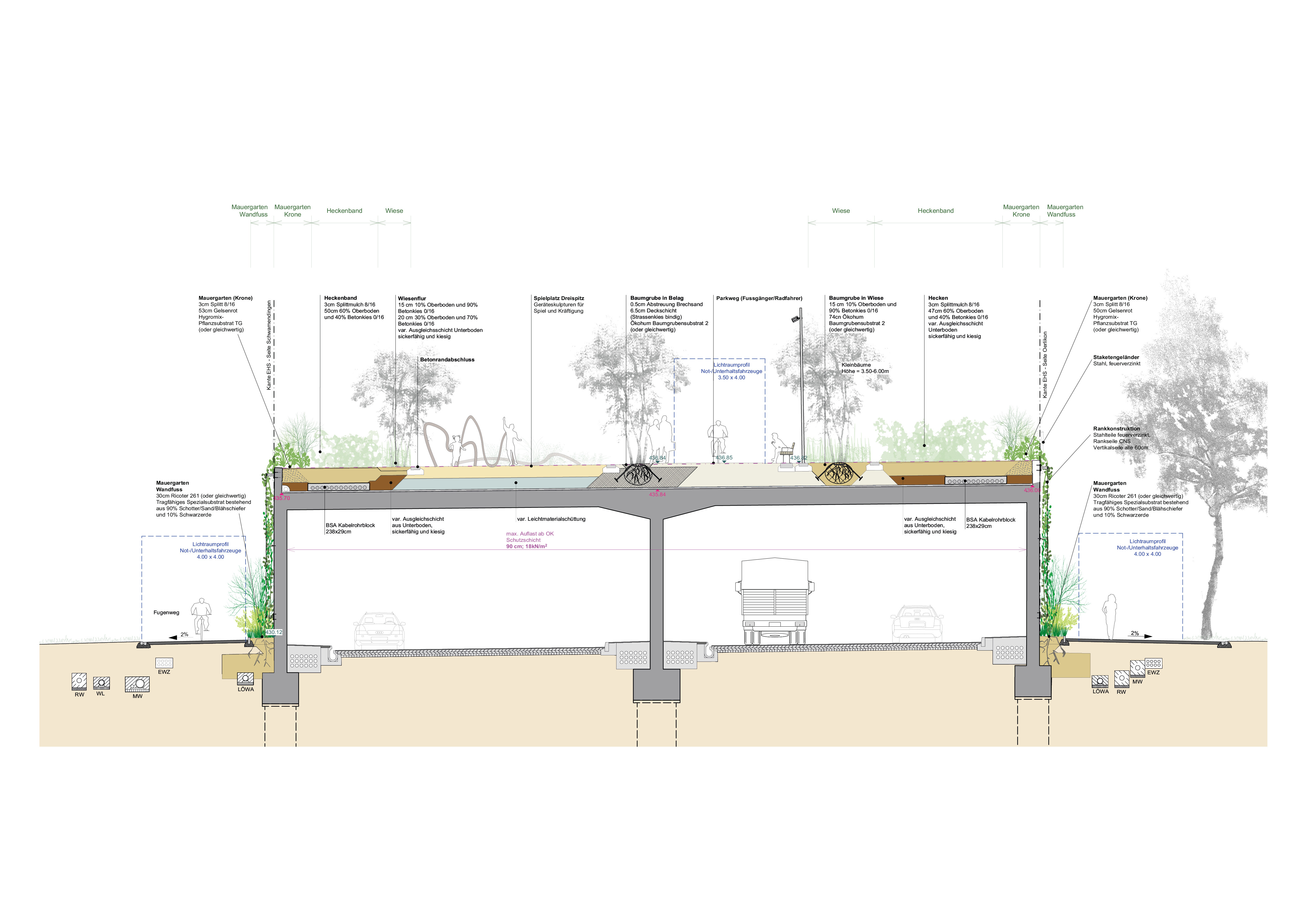 A1 Einhausung Schwamendingen mit Ueberlandpark und Sanierung Schöneichtunnel – Krebs und Herde Landschaftsarchitekten
