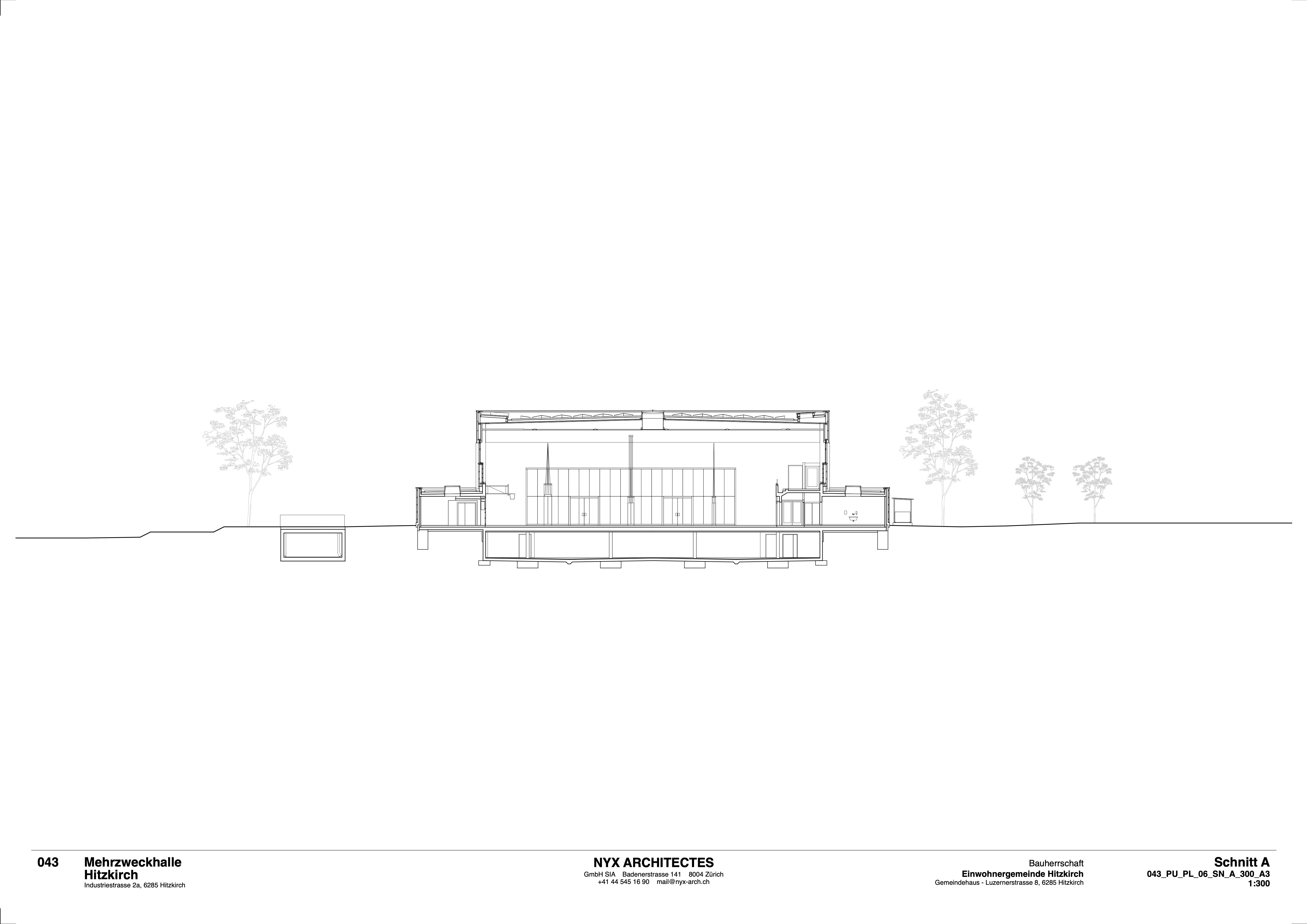 Die Halle ist identitätsstiftend für Hitzkirch. Sie vermittelt zwischen historischer Schulbebauung, Friedhof und Industriearchitektur, öffnet sich zum Schulweg und Parkraum und erzeugt durch Materialwahl, Lichtführung und Raumabfolge eine einladende, atmosphärische Qualität. Die Halle wird so zum kulturellen wie sozialen Treffpunkt der Gemeinde.
