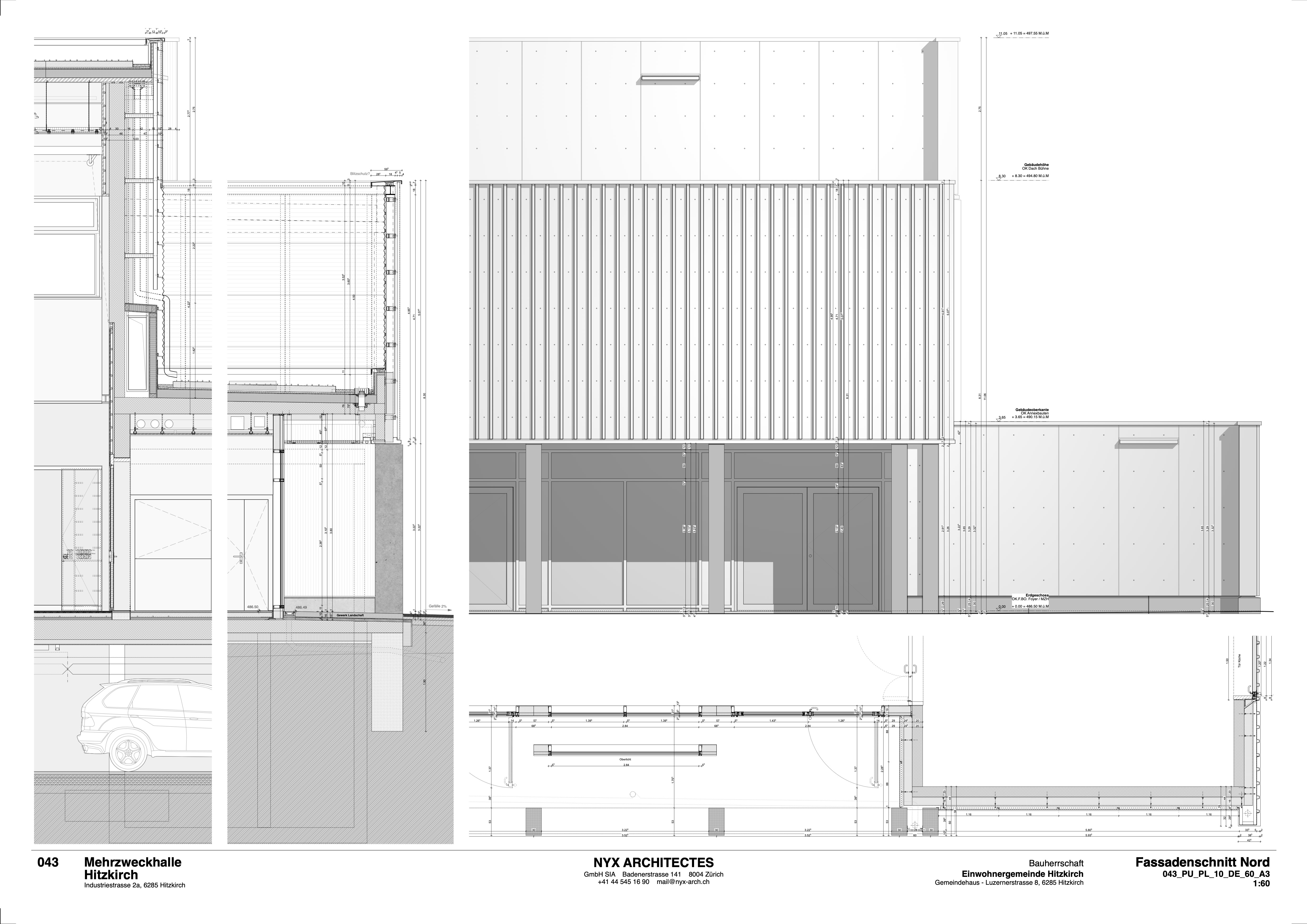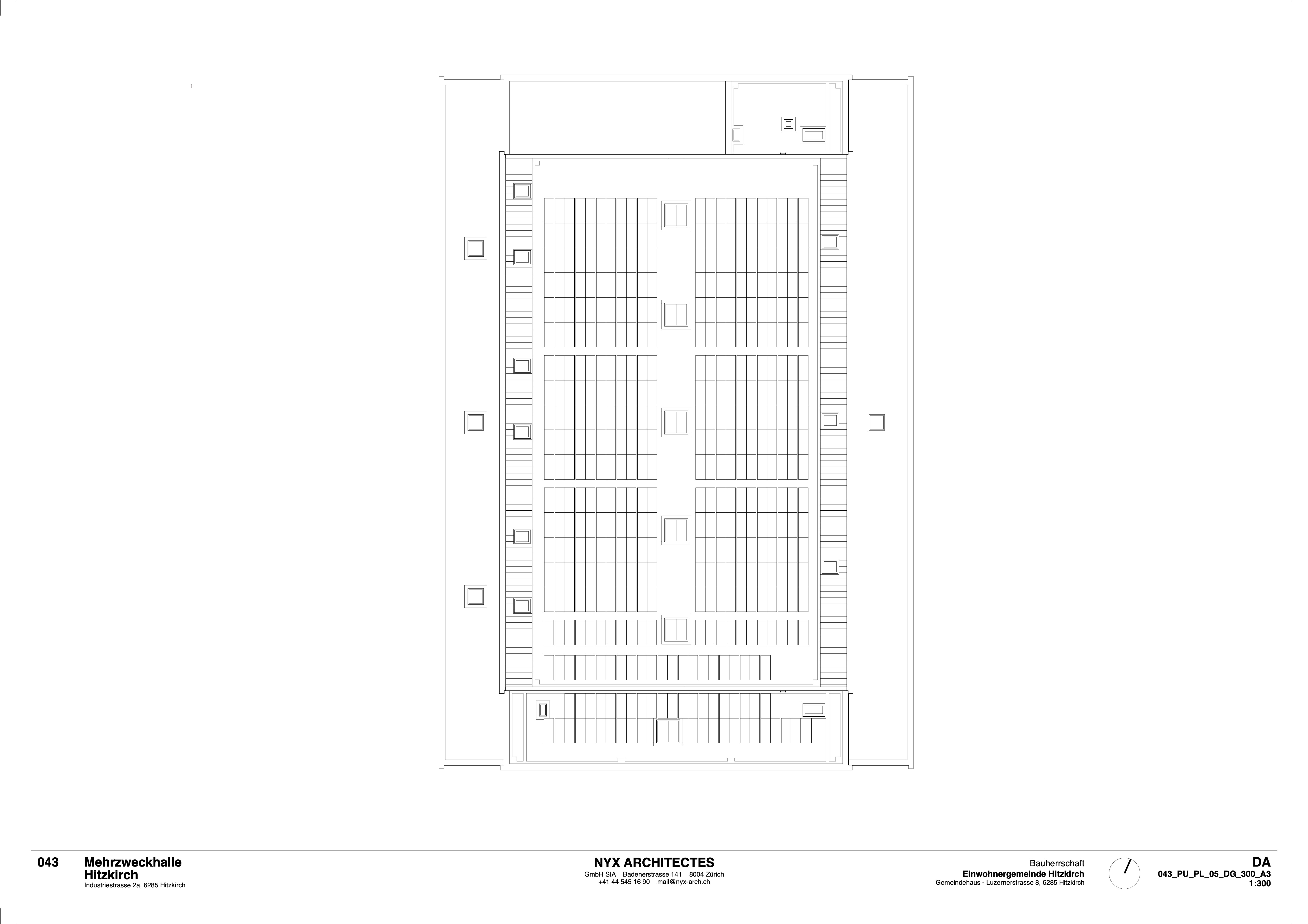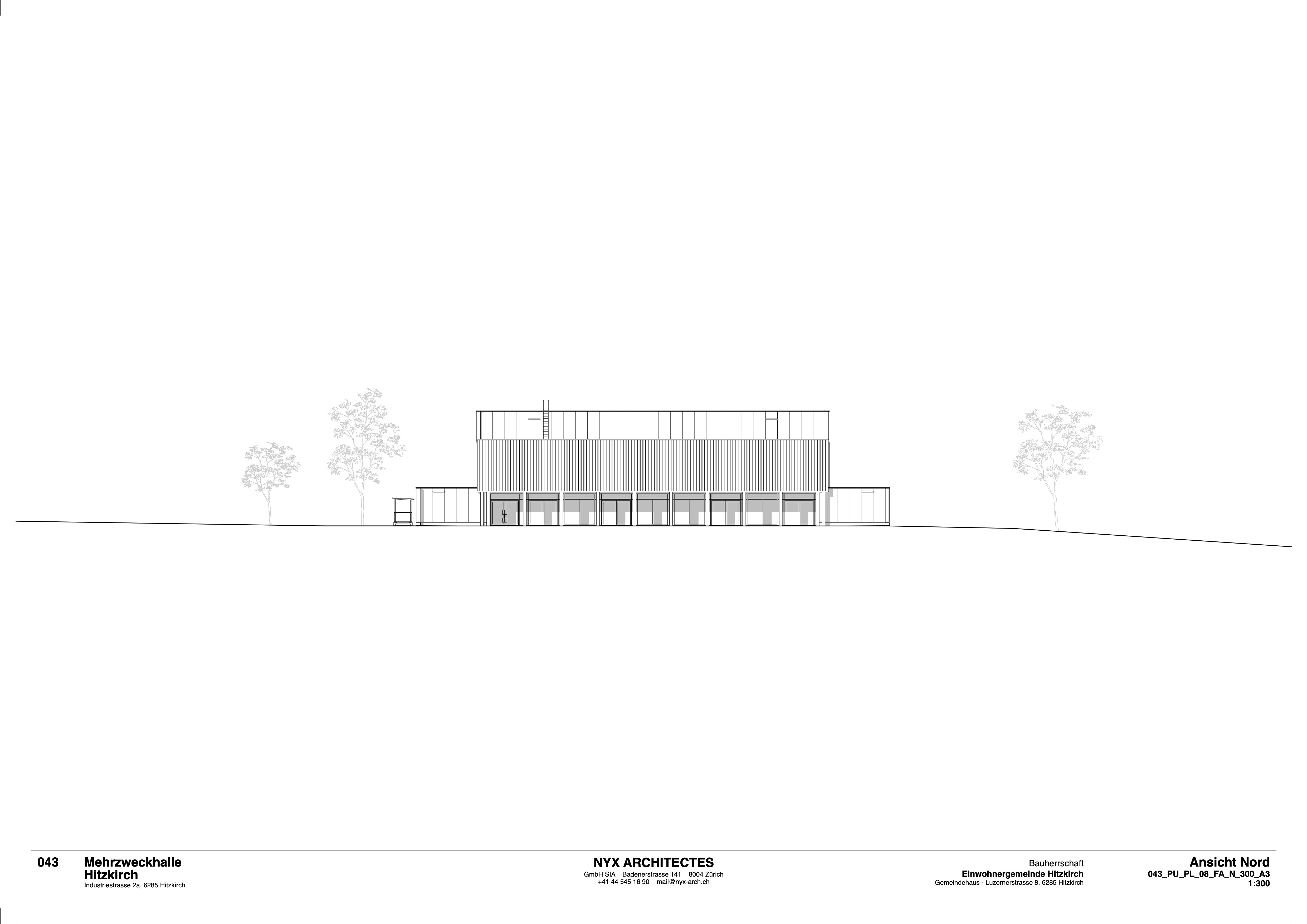 Die hinterlüftete Metallfassade übersetzt die innere Ordnung nach aussen, reflektiert Licht und Vegetation, artikuliert die horizontale Gliederung und reagiert auf die heterogene Umgebung. Markisen bieten Sonnen- und Sichtschutz. Das Projekt vereint städtebauliche Klarheit, typologische Präzision, konstruktive Ehrlichkeit und nachhaltige Materialwahl. So entsteht ein multifunktionaler, langlebiger Ort, der Schule, Sport und kulturelle Begegnung für die Gemeinde Hitzkirch nachhaltig stärkt.