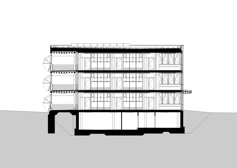 Durch die kompakte Bauweise, südlich orientierte Aussenräume mit hoher Besonnungsqualität und ein CO₂-optimiertes Stützen-Plattentragwerk. Holzständerwände reduzieren den ökologischen Fussabdruck und ermöglichen Anpassungen im Lebenszyklus. Die nachhaltige Konstruktion unterstützt einen ressourcenschonenden Betrieb und langfristige Umweltverträglichkeit.