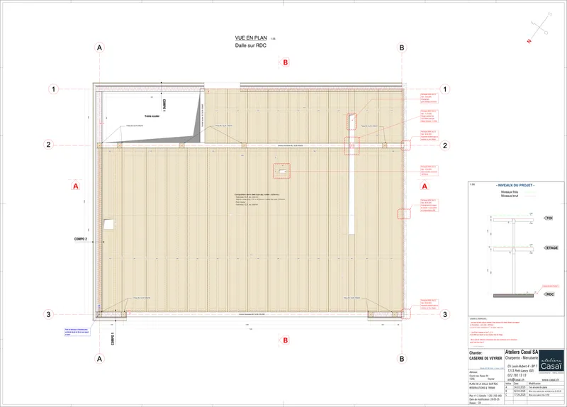 Le projet repose sur une collaboration structurée entre la Commune de Veyrier, AG Construction SA et les équipes de conception. Les décisions relatives à la transformation, au réemploi et au système porteur bois ont été intégrées dès les premières phases et suivies jusqu’à la réalisation, garantissant cohérence, qualité d’exécution et maîtrise du projet.