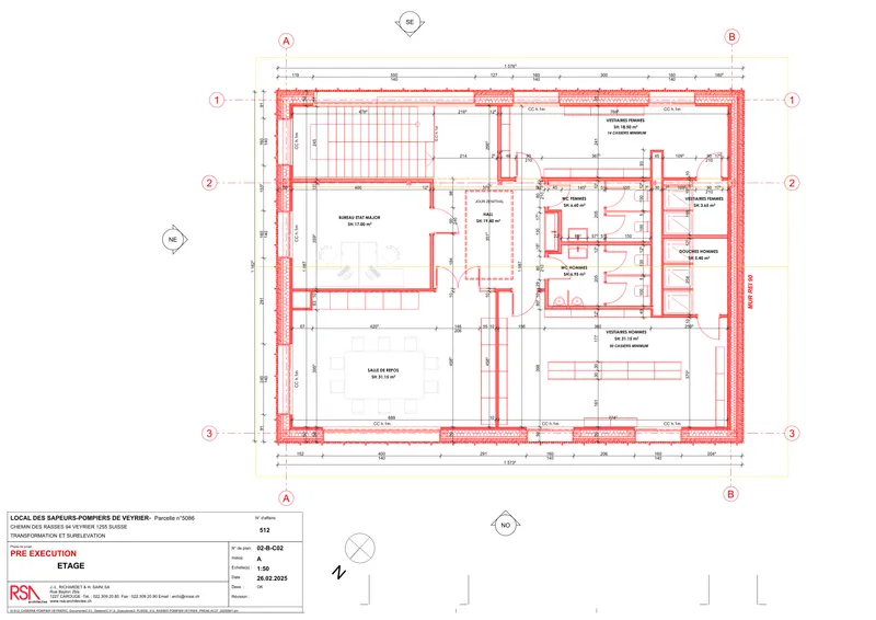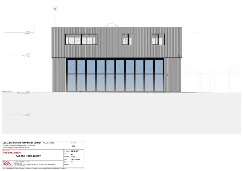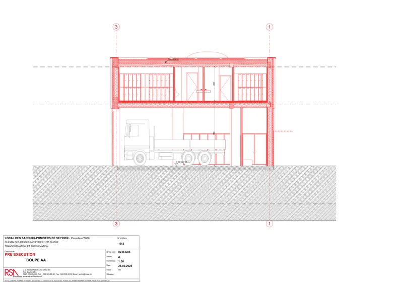 Le projet de transformation et de surélévation de la caserne de pompiers de la Commune de Veyrier est issu d’un appel d’offres public. Il s’inscrit dans une démarche de construction publique responsable, fondée sur la valorisation de l’existant, la sobriété des ressources et des choix constructifs durables.