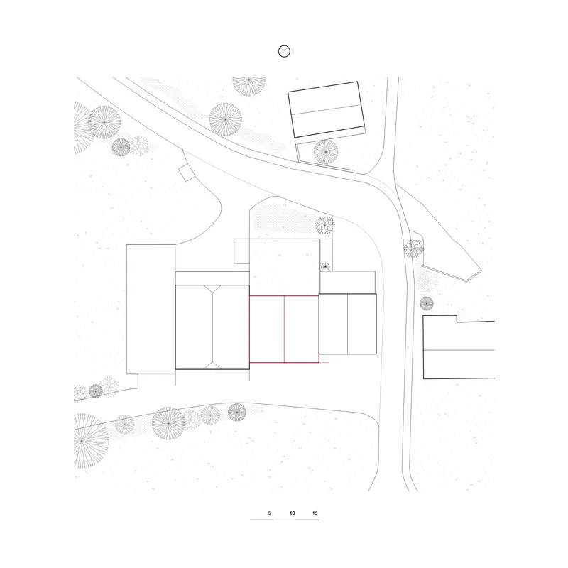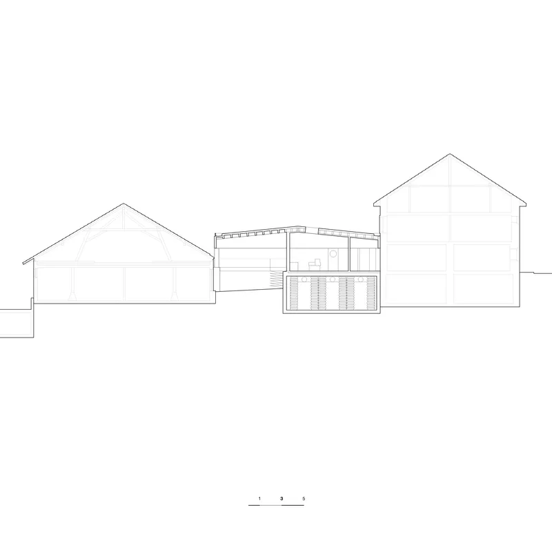 L’intervention s’appuie sur les typologies rurales fribourgeoises existantes, tout en affirmant une écriture contemporaine lisible. Le nouveau pignon dialogue avec la laiterie historique et l’ancienne porcherie par son échelle, son orientation et sa matérialité. Cette continuité typologique assure une cohérence spatiale entre patrimoine bâti et architecture actuelle.