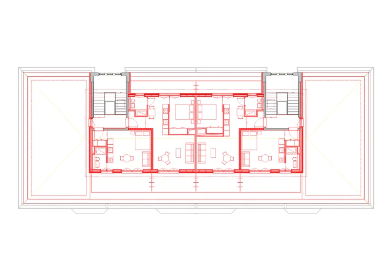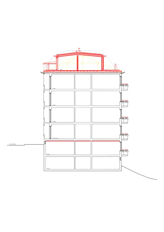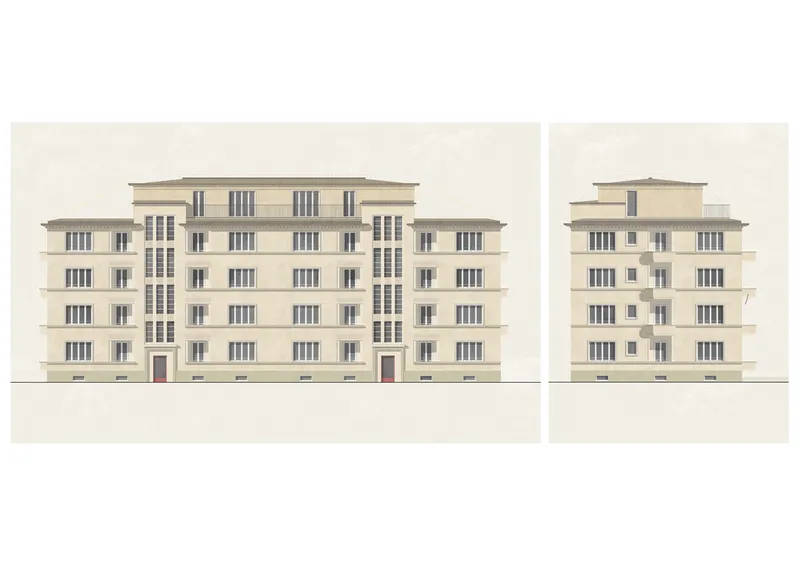 Par une densification mesurée, la surélévation des deux immeubles répond à la pénurie de logements caractéristique de la région, sans étalement urbain. Simultanément, le projet permet de réaliser des travaux d’entretien et de mises aux normes nécessaires, souvent différés dans le bâti existant. Le projet préserve ainsi le patrimoine des années 1930, témoin d’une manière de construire et d’habiter, en l’adaptant aux besoins actuels tout en prolongeant durablement son usage.