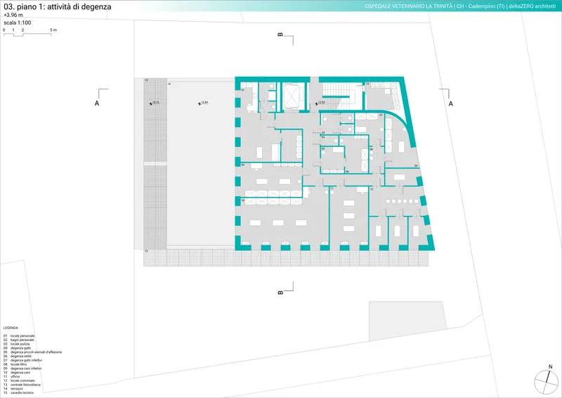 La struttura esistente è stata trasformata per ospitare un ospedale veterinario, realizzato con strutture flessibili (pareti in cartongesso, pavimenti tecnici) e impiantistica razionale e facilmente accessibile per manutenzione e modifica, tale da permettere se necessario una rapida riconversione.