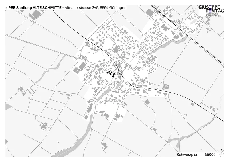 Die Alte Schmitte in Güttingen nimmt mit klar proportionierten Neubauten und der Integration der Bestandsbauten den dörflichen Massstab auf und schafft ein Gefüge aus Plätzen, Gassen und Gärten. Der Massstab, Dachformen und Materialität der bestehenden Dorfstruktur wir aufgenommen. Durch die gezielte Verdichtung bleiben Freiräume erhalten, während die historischen Gebäude als identitätsstiftende Elemente in das Gesamtkonzept integriert werden.