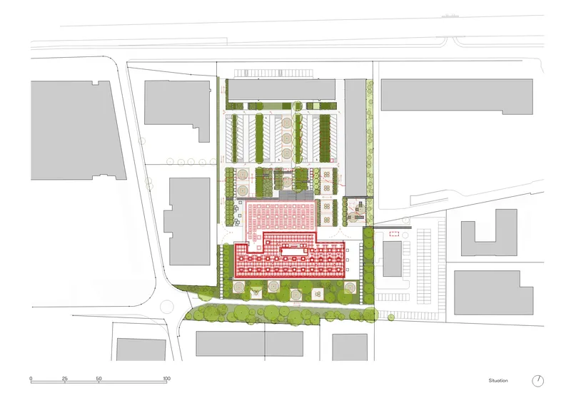 Le bâtiment est situé au cœur du futur quartier des Ronquoz 21, la ville du XXIe siècle développé par Herzog et de Meuron : À l’origine à vocation industrielle, le quartier est désormais appelé à se transformer en quartier mixte et durable. En revalorisant un bâtiment industriel, le projet incarne la première initiative régénérative du quartier. Ses aménagements extérieurs amorcent par ailleurs le premier kilomètre du futur parc des Ronquoz.
