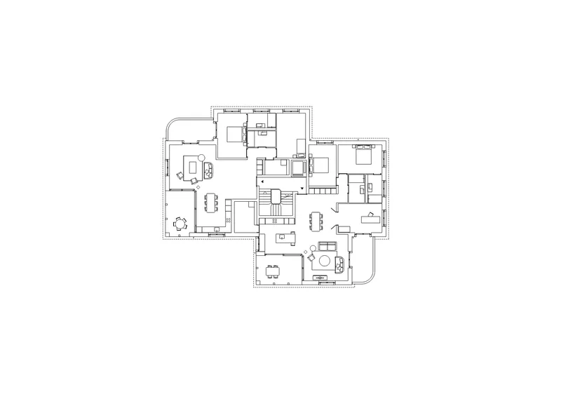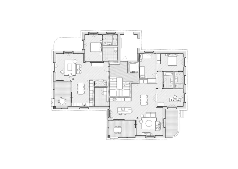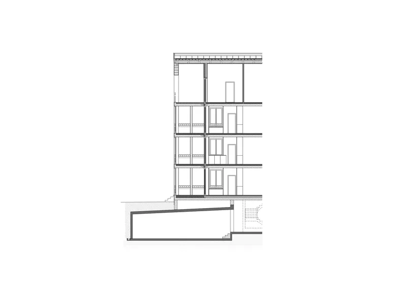 Le projet comprend un ensemble de sept appartements aux typologies variées, allant du 2,5 pièces au 4,5 pièces. Chaque logement bénéficie d’une triple orientation et d’un rapport visuel privilégié avec l’extérieur, renforcé par la présence d’un balcon et d’une loggia. Cette dernière est conçue comme une véritable pièce supplémentaire, librement appropriable par les habitants. Les espaces de vie sont articulés de manière à offrir une grande flexibilité d’aménagement.