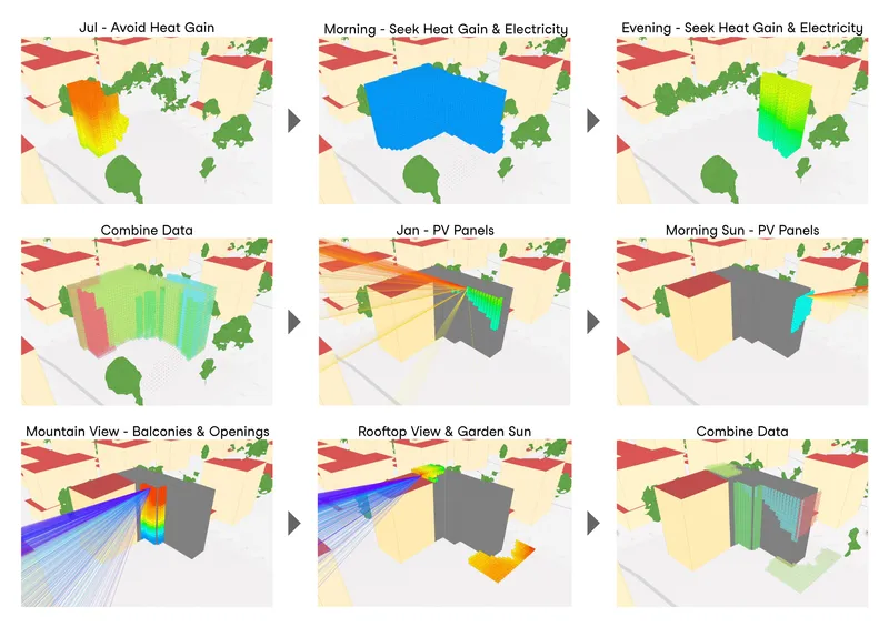 Von Beginn an arbeiteten Eigentümer, Architekten und Ingenieure eng zusammen, um gemeinsame Projektziele zu definieren. Ein innovatives und multidisziplinäres digitales Toolset unterstützte diesen Prozess in Analyse, Experiment, Entscheidungsfindung und Entwurf, indem es komplexe Umweltdaten räumlich lesbar machte. So wurden Auswirkungen von Sonne, Lärm, Verschattung und Blickbeziehungen unmittelbar verständlich und der gemeinsame Prozess gestärkt.