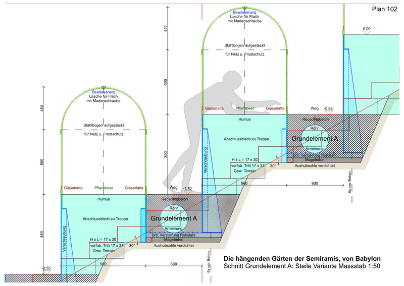 Die hängenden Gärten der Semiramis von Babylon – 2. Erschliessung Hochbeete – A. Pfister