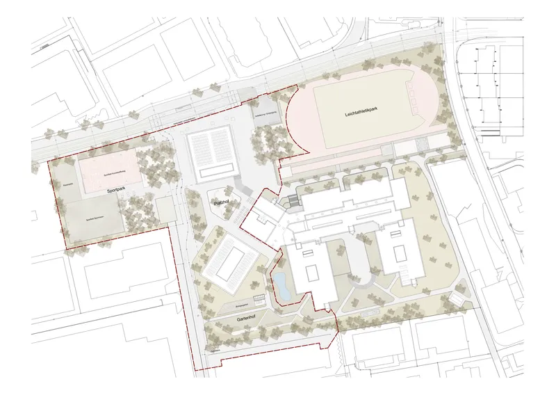 Erweiterungsneubauten Kantonsschule Limmattal, Urdorf – Sportpark als öffentliche Begegnungszone – Igor Ponti