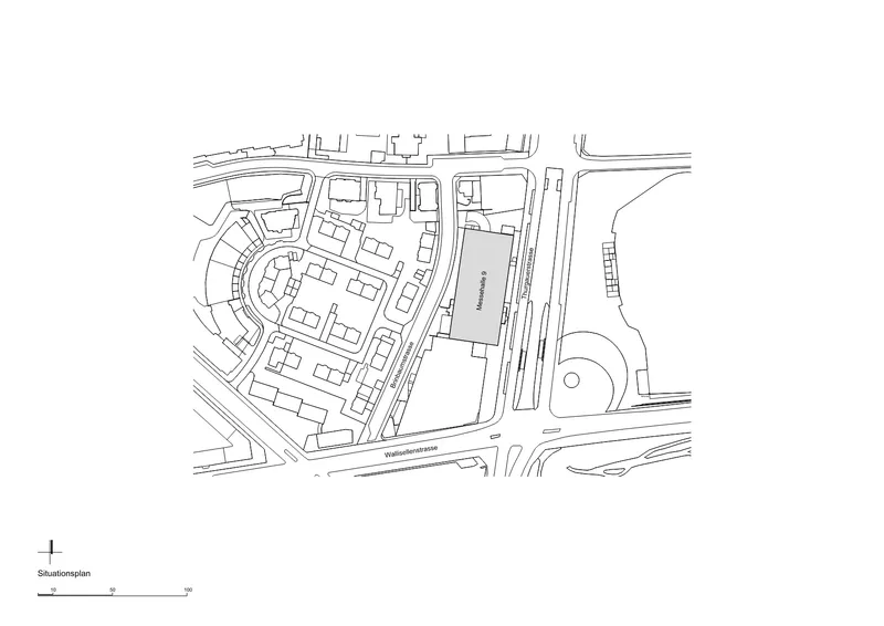 Der Umbau der unter Denkmalschutz stehenden Messehalle 9, zwischen Birnbaum- und Thurgauerstrasse, soll diese benötigten Flächen bereitstellen. Die 1962 vom Zürcher Architekten Werner Stüchli erbaute Halle besteht aus einem dreischiffigen Querschnitt mit einem 6 Meter hohen Hauptschiff und zwei niedrigeren Seitenschiffen. Die Tragkonstruktion, welche die markante Dachsilhouette aus Graben- und Pultdächern beschreibt, besteht aus elf gleichen Betonrahmen. Über zwei Fensterbänder an der West- und Ostfassade wird die Halle gleichmässig belichtet.