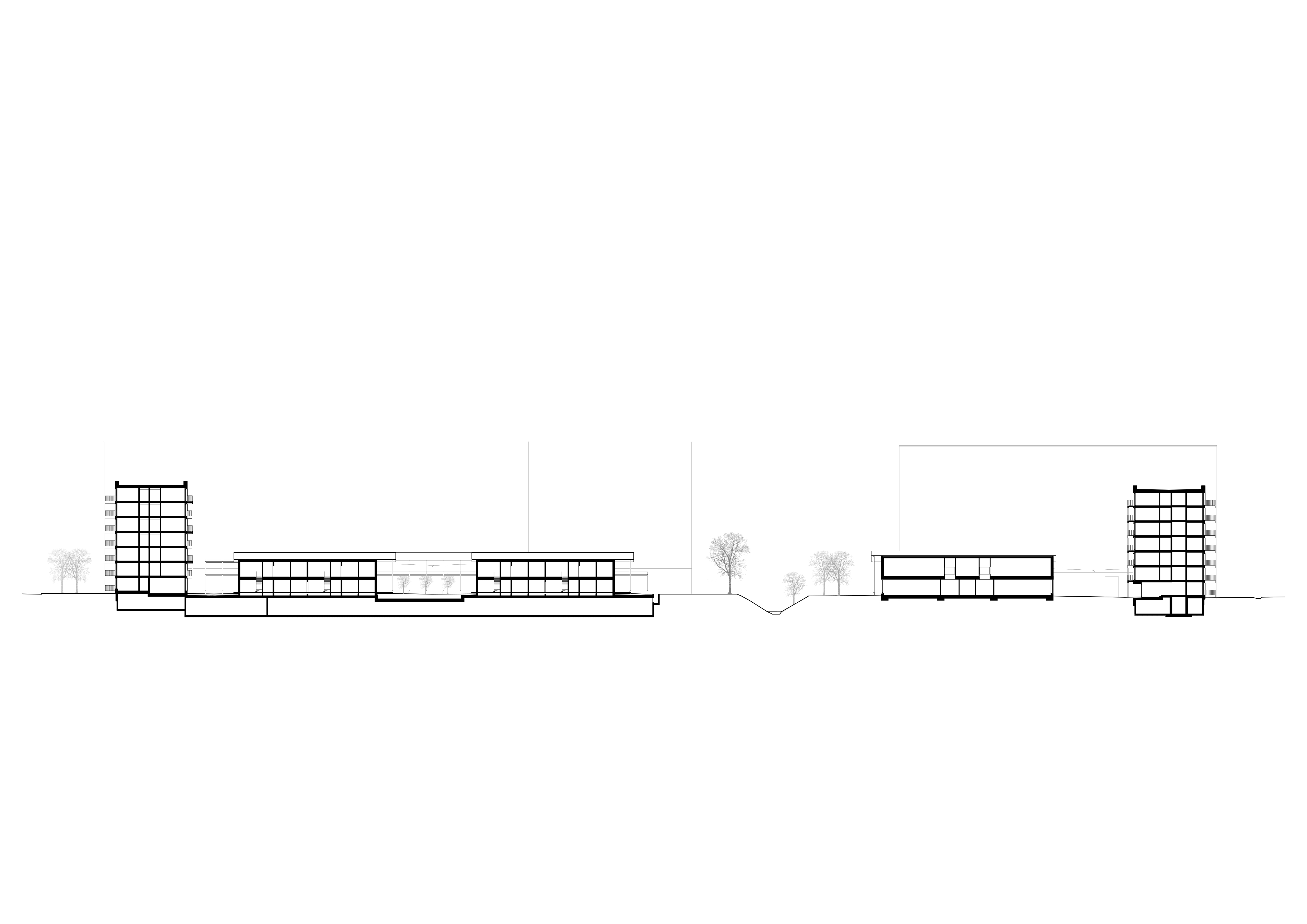 Mit dem Projekt «Wohnsiedlung Leutschenbach» wurden in Zürich-Seebach rund 400 neue städtische Wohnungen realisiert. Zusatznutzungen wie Kindergarten und Räume für Dienstleistungen und Gewerbe setzen wichtige Grundpfeiler für ein neues, belebtes Zentrum mitten im wachsenden Quartier. Durch zwei zueinander ausgerichtete und leicht gestaffelte, U-förmige Baukörper wird eine weitläufige, grossmassstäbliche Siedlung gebildet. Die eingeschriebene, dörfliche Gestaltung des Innenbereichs – nutzbar für Quartier und Bewohnende – ist grosszügig verbunden mit dem Leutschenpark und soll einen identitätsstiftenden Mehrwert für urbanes Leben bringen. Der Hof überlagert den Grossmassstab mit einer kleinteiligen Atelierwelt sowie Plätzen für Spiel und Zusammensein. Die Wohntypologien mit minimierten Erschliessungsflächen orientieren sich an den minimalen Flächenvorgaben der Wohnbauförderung und sind aus fundierter Auseinandersetzung mit der Aufgabenstellung des gemeinnützigen Wohnungsbaus entstanden.