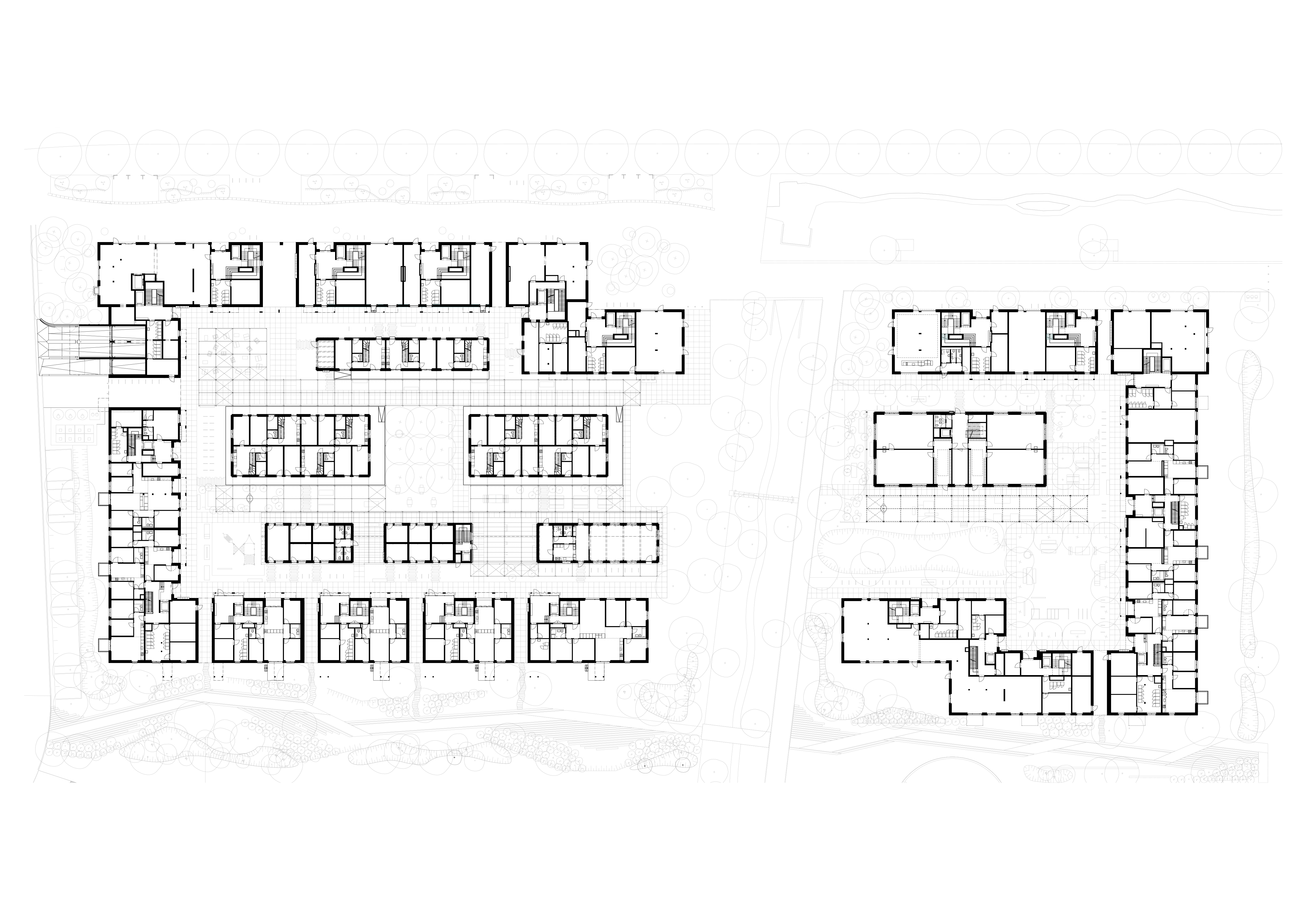 Die Wohnsiedlung bietet eine grosse Vielfalt an Wohntypologien und flexible Grundrisse, die auf unterschiedliche Bedürfnisse und Lebensphasen eingehen. Die Grundrisse sind bewusst einfach und wandelbar gestaltet: Küche und Wohnzimmer liegen sich gegenüber und bilden das Zentrum der Wohnung. Ein raumhohes Schrankelement mit Schiebetüren ermöglicht flexible Abtrennungen, sodass das Wohnzimmer bei Bedarf als zusätzliches Individualzimmer genutzt werden kann.
