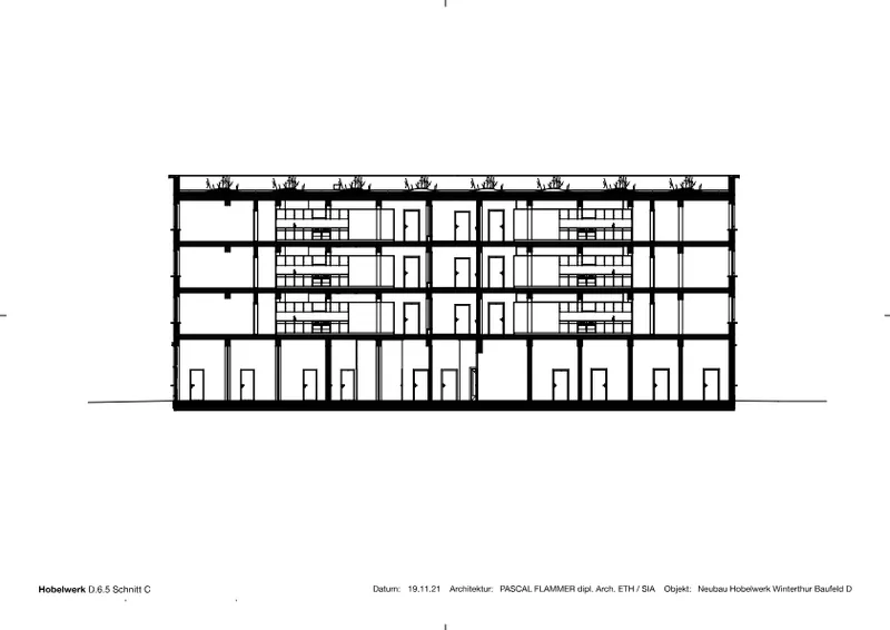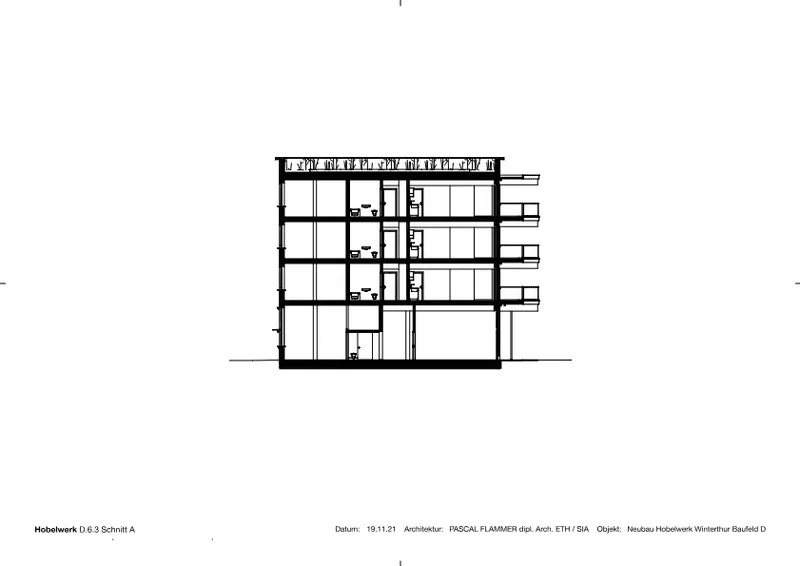 Das Projekt Hobelwerk, Haus D (Winterthur, 2023) der Baugenossenschaft «mehr als Wohnen» realisiert einen sozial, wirtschaftlich und ökologisch nachhaltigen Lebensraum im Sinne der 2000-Watt-Gesellschaft. Der radikale Holzbau erreicht Erstellungsemissionen von 7,4 kg/m²a und liegt damit rund 20 % unter dem SIA-2040-Richtwert. Durch den Verzicht auf Untergeschosse und minimale Fundamente konnte der Betonverbrauch und die graue Energie stark reduziert werden.