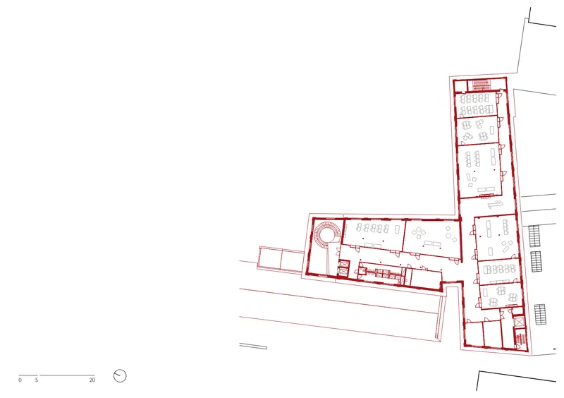 Die Schule für Gestaltung belebt das ehemalige Fabrikgelände mit flexiblen, multifunktionalen Räumen: Ateliers, Labors, Klassenzimmer, Büros, Bibliothek, Cafeteria und Aufenthaltsbereiche passen sich wechselnden Nutzungen und Anforderungen an. Der Industriecharakter bleibt erhalten, Umbauten sind moderat und respektvoll, Funktionalität und baukulturelles Erbe werden so optimal verbunden.
