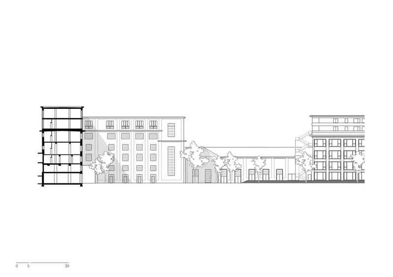 Die Schule als Bildungsort erfüllt das Grundrecht auf Bildung und macht das ehemalige Fabrikareal lebendig. Unterschiedliche Menschengruppen nutzen die Räume, erzeugen Synergien und formen eine vielfältige Gemeinschaft. Bildung verschmilzt mit Wohnen, Arbeit, Freizeit, Kultur und Innovation, partizipative Prozesse stärken Identität, Miteinander und sozialen Zusammenhalt.