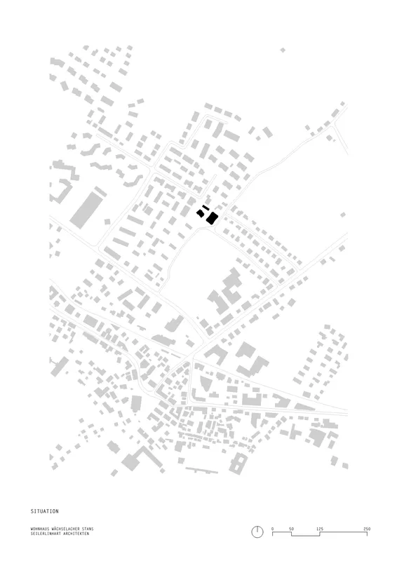 Die Umgebung ist durch heterogene Wohnbebauung geprägt. Ziel des Projekts ist es, trotz Verdichtung die Eigenheit des Grundstücks zu bewahren. Ein einzelner kompakter Neubau im Sinne einer „modernen Hofstatt“ minimiert den Fussabdruck und erhält zusammenhängende Freiflächen. Der dreigeschossige Neubau tritt nicht in Konkurrenz zum Wächselacherhaus, sondern bildet mit diesem und einem Nebengebäude ein Ensemble um einen zentralen Hof.