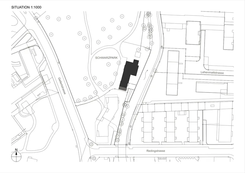 Am südlichen Ende des Grünraums „Schwarzpark“ steht das Gärtnerhaus (1862), ein ehemaliges Ökonomiegebäude, das im kantonalen Inventar als schützenswert gelistet ist. Nach der Übernahme durch den Kanton 1991 blieb das Gelände unverändert; seit 2015 ist der Park öffentlich zugänglich und ein Großteil der artenreichen Wiesen steht unter Naturschutz. Der Verein „Gärtnerhuus“ mietet seit 1997 einzelne Räume und übernimmt kleinere Unterhaltsarbeiten.