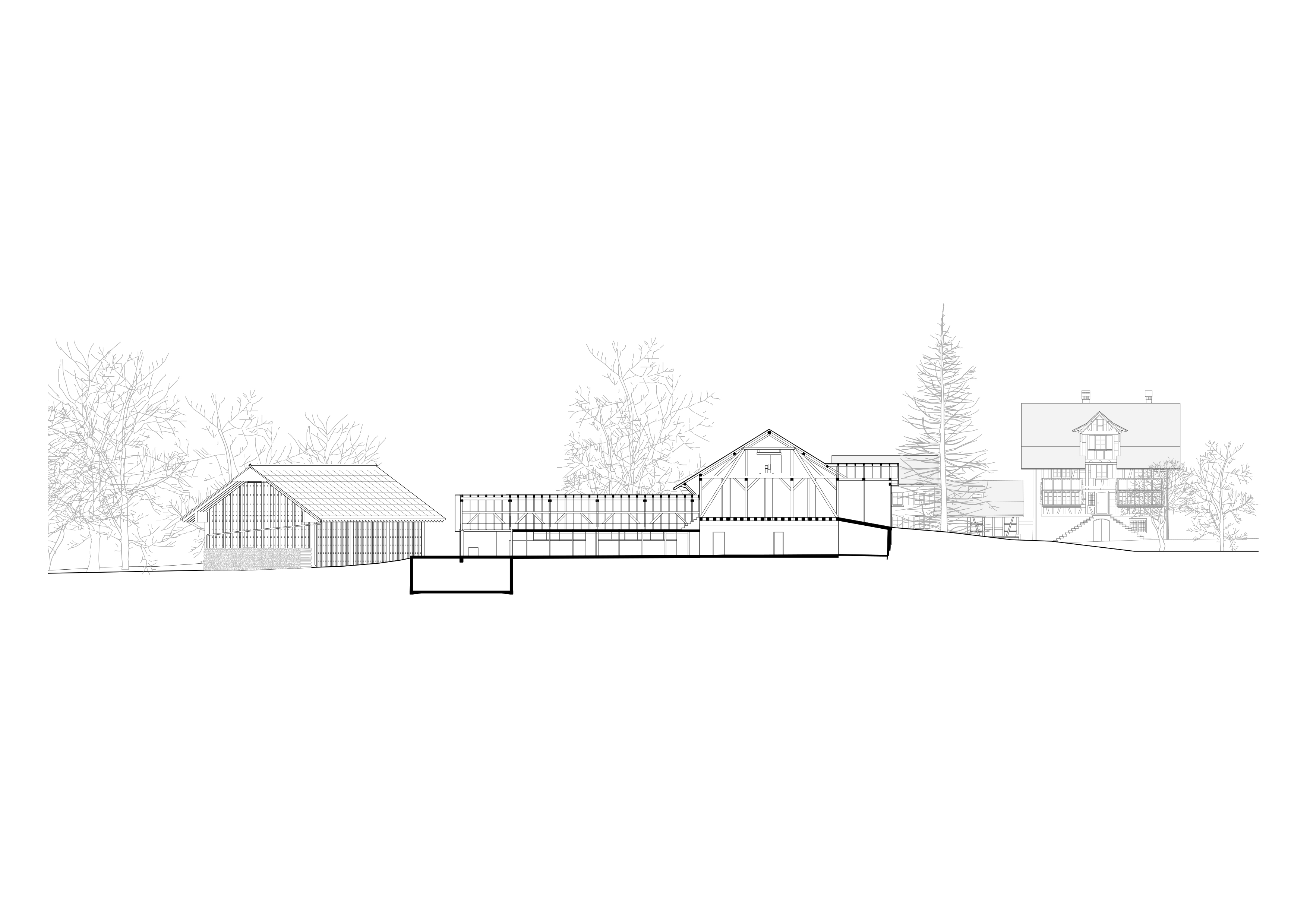 Am Lützelsee, eingebettet in eine geschützte Moorlandschaft, liegt der Menzihof, ein Ensemble aus dem denkmalgeschützten Menzihaus und mehreren Ökonomiegebäuden. Mit grossem Respekt wurde das Ensemble instandgesetzt und erweitert: Der bestehende Warmstall wurde in einen Kaltstall mit Laufhöfen umgewandelt und die ehemalige Garage zum Hofkiosk umgenutzt. Ergänzend wurde eine neue Remise errichtet. Dieser innovative Holzbau mit Indach-Photovoltaikanlage fügt sich harmonisch in die ortstypische Bebauungsstruktur ein und definiert einen klaren Abschluss des Weilers nach Westen. Im Einklang mit dem Netto-Null-Ziel des Kantons Zürich sorgt die semipermeable Hülle des Neubaus für optimale Belichtung, während das lichtdurchlässige Solardach eine nachhaltige Energiegewinnung unterstützt. Als integraler Bestandteil der Architektur tritt das Dach als «fünfte Fassade» in Erscheinung und steht exemplarisch für eine neue Ästhetik des klimaangepassten Bauens. Die bewusste Entscheidung, die bestehenden Ökonomiegebäude zu erhalten und gezielt zu erweitern, anstatt sie durch einen Ersatzneubau abzulösen, spricht für eine nachhaltige Denkweise. Die behutsame Transformation des Menzihofs resultiert aus einer tiefgehenden Auseinandersetzung mit landwirtschaftlichen Anforderungen, Ortsbildschutz, ressourcenschonendem Bauen und der Wiederverwendung vorhandener Bauteile. Das Projekt beweist, dass ein respektvoller Umgang mit dem Bestand und eine allumfassende Modernisierung des Landwirtschaftsbetriebs parallel möglich sind. Das Projekt demonstriert, dass Nachhaltigkeit und gestalterischer Anspruch kein Widerspruch sind, sondern gemeinsam eine neue architektonische Sprache formen können.