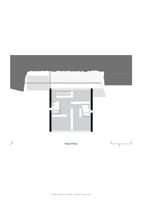 L’architettura non si limita a occupare il suolo, ma lo misura, lo articola e lo rende abitabile attraverso una sequenza di soglie, piani e orientamenti che traducono la topografia in spazio domestico. Il progetto ricompone così pendio e abitare attraverso un lessico di muri in sasso e un volume compatto ma direzionato, traducendo la tradizione in un linguaggio contemporaneo e misurato.