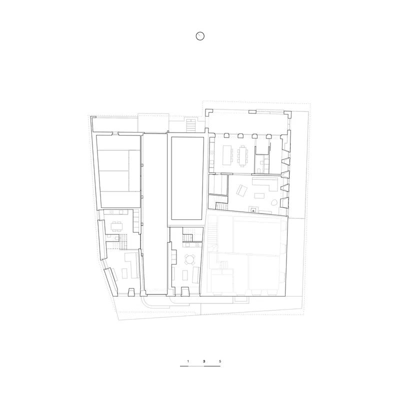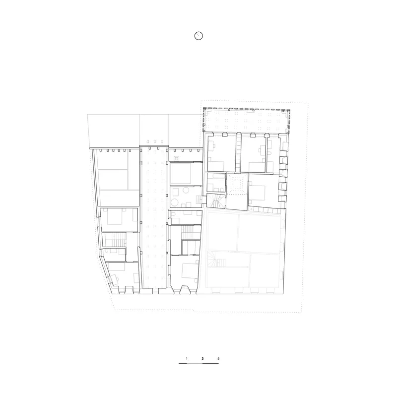 À la suite d’une extension du rural, cette spécificité avait toutefois disparu. Le projet vise ainsi à restituer la cohérence de l’ensemble en reconstruisant l’habitation disparue et en transformant la surface du rural étendue au-delà du logement démoli en un espace intermédiaire, entre intérieur et extérieur. Les deux autres appartements occupent quant à eux les anciennes écuries, permettant à la fourragère, convertie en espace de distribution, de conserver sa spatialité.