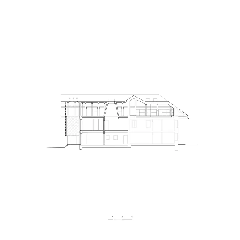 Le projet privilégie la réutilisation du bâti existant afin de limiter l’impact environnemental et la consommation de ressources. La densification mesurée, l’optimisation de l’enveloppe et l’amélioration de l’apport lumineux contribuent à l’efficacité énergétique. Les interventions constructives, sobres et durables, participent à la préservation du paysage culturel et à une gestion responsable du sol.