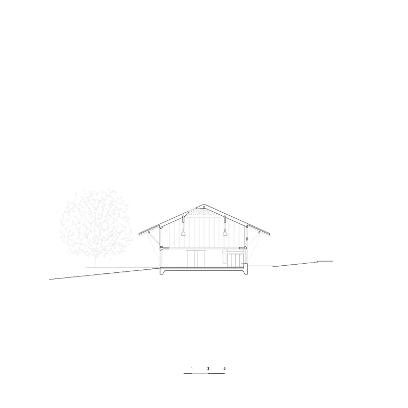 Le projet s’inscrit dans une continuité typologique et spatiale avec la ferme fribourgeoise du XVIIIᵉ siècle. Les interventions contemporaines dialoguent avec l’échelle, la structure et les matérialités existantes sans les imiter. Cette approche assure une cohérence entre patrimoine bâti et création actuelle, renforçant la lisibilité du lieu dans son contexte rural.