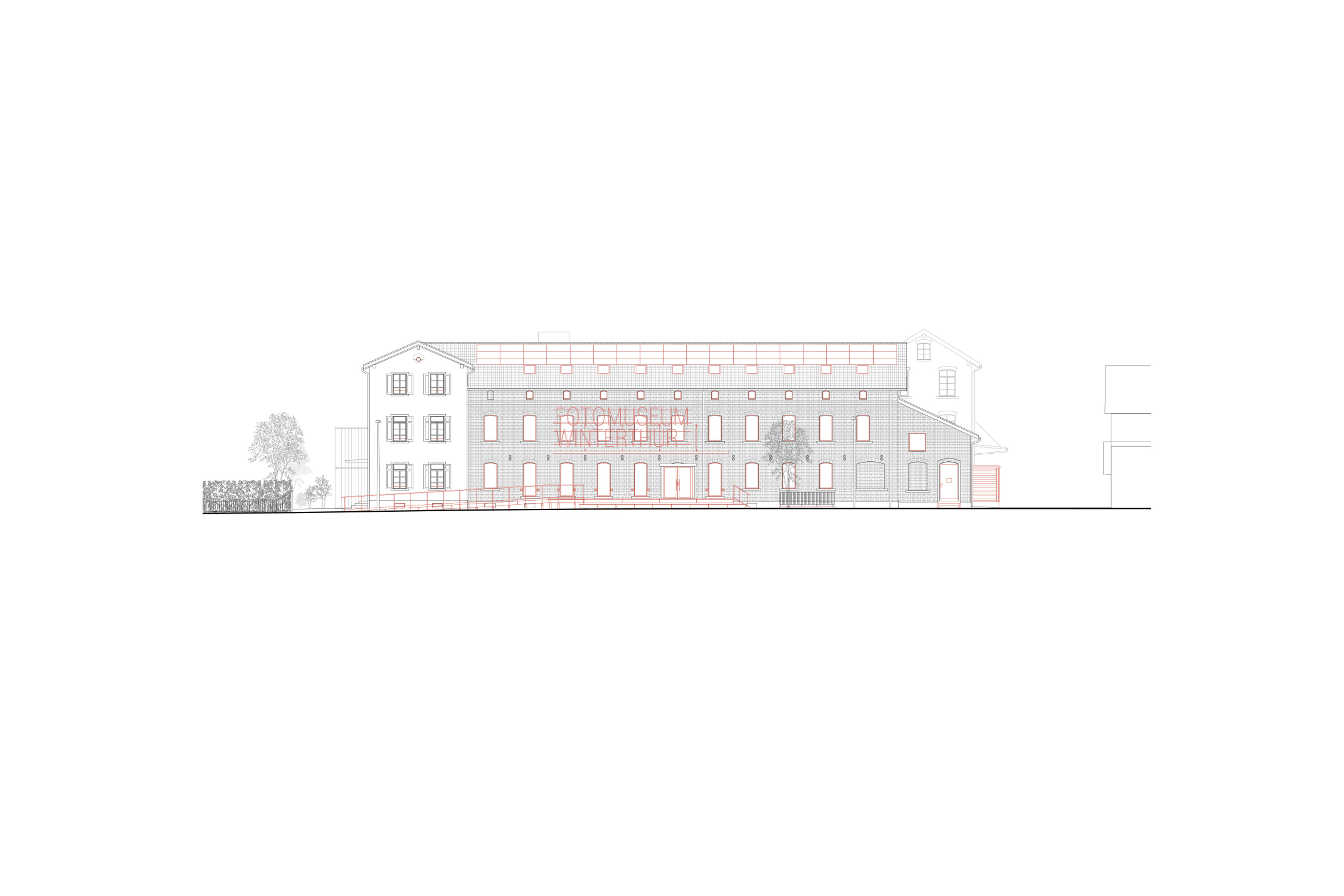 Das Fotomuseum Winterthur besteht aus einem historisch gewachsenen Konglomerat aus vier Gebäudeteilen: Kopfbau, Längsbau, Wohnhaus und Fabriksaal mit Sheddächern. Das Geviert zwischen Grüzen- und Töpferstrasse wird in der nordwestlichen Ecke mit Ausstellungs- und Werkstattflächen in einem einfachen Kubus generisch ergänzt. Die ReUse-Fassade mit dem Trapezblech aus Corten-Stahl ordnet sich mit Farbe und Patina selbstverständlich und kontextuell ins Industrieensemble ein.