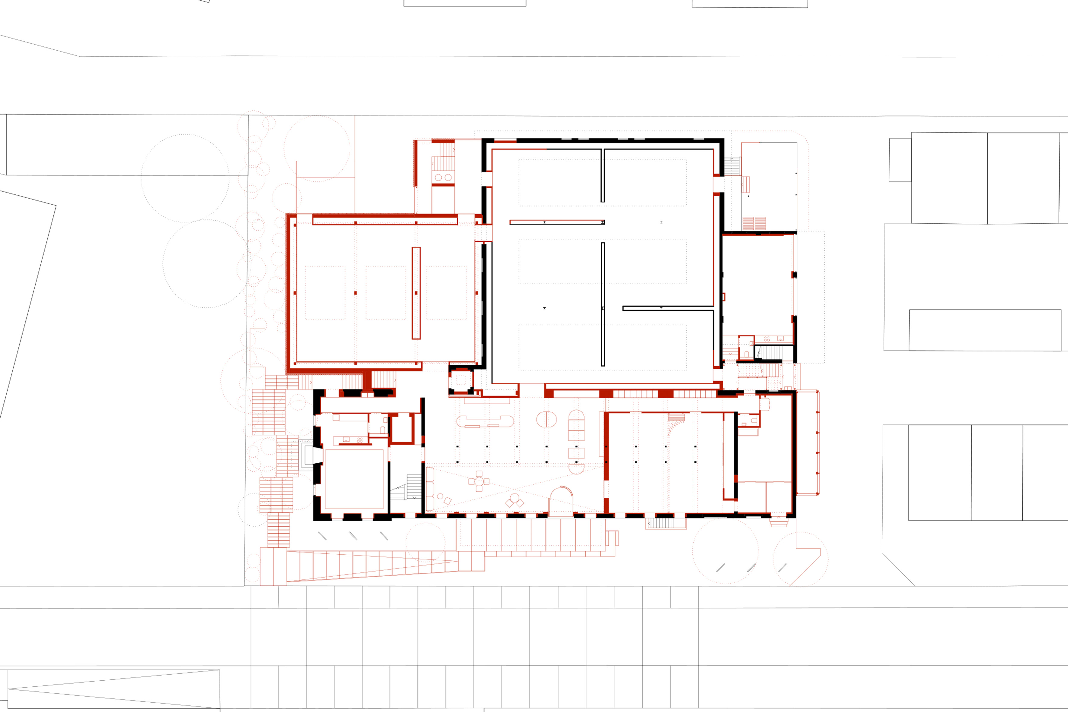 Das Fotomuseum Winterthur besteht aus einem historisch gewachsenen Konglomerat aus vier Gebäudeteilen: Kopfbau, Längsbau, Wohnhaus und Fabriksaal mit Sheddächern. Der Bestand wird den aktuellen Normen und betrieblichen Bedürfnissen entsprechend erneuert. Das Geviert zwischen Grüzen- und Töpferstrasse wird in der nordwestlichen Ecke mit Ausstellungs- und Werkstattflächen ergänzt. Sowohl der Industriecharakter als auch das Kredo des bewussten Einsatzes der Mittel zeichnet die Erneuerung aus. Die Massnahmen sind: mit einem Spiegeldach gedeckter Aussenraum für Erschliessung und Aufenthalt mit klarer Adresse; zweigeschossiges, multifunktionales Foyer als repräsentatives Zentrum mit Treppe ins Obergeschoss und zuschaltbaren Flächen zur Kunstvermittlung; Neustrukturierung der Erschliessung, Büro- und Infrastrukturflächen im Kopf- und Längsbau; strukturelle Anpassungen der Shedhalle; Erweiterung mit Ausstellungsfläche, Werkstatt und Anlieferung; Aktualisierung der Wohnraumflächen im Dachgeschoss; gebäudetechnische Erneuerung inklusive PV-Anlage. Die Erweiterung ist strukturell ein Holzbau mit vier Binderachsen auf einem Recycling-Beton-Sockel. Das adaptive Grundrisslayout ist mit drei Oberlichtaufbauten für natürliches Licht und einem Fenster mit Blick ins Freie komplettiert. Die äussere Erscheinung ist durch die patinierte Trapezblechfassade aus Cortenstahl geprägt, Fassadenelementen des 2022 rückgebauten Winterthurer Schulhauses Wallrüti, einem ikonografischen Zeitzeugen aus den 70er Jahren. Um dem klaren Volumen einen präzisen Schliff zu verleihen, sind Dach- und Sockelabschlüsse durch neue, feuerverzinkte Stahlprofile definiert. Weitere präzis in die Fassadenfläche gesetzte Profile verorten das neue Volumen mit Bezug zum Kontext. Es entsteht ein changierendes Bild zwischen einer als Ausstellungsraum genutzten Industriehalle und einem industriell erscheinenden Ausstellungspavillon, welches das ursprüngliche Ensemble inhaltlich wie äusserlich kohärent vervollständigt.