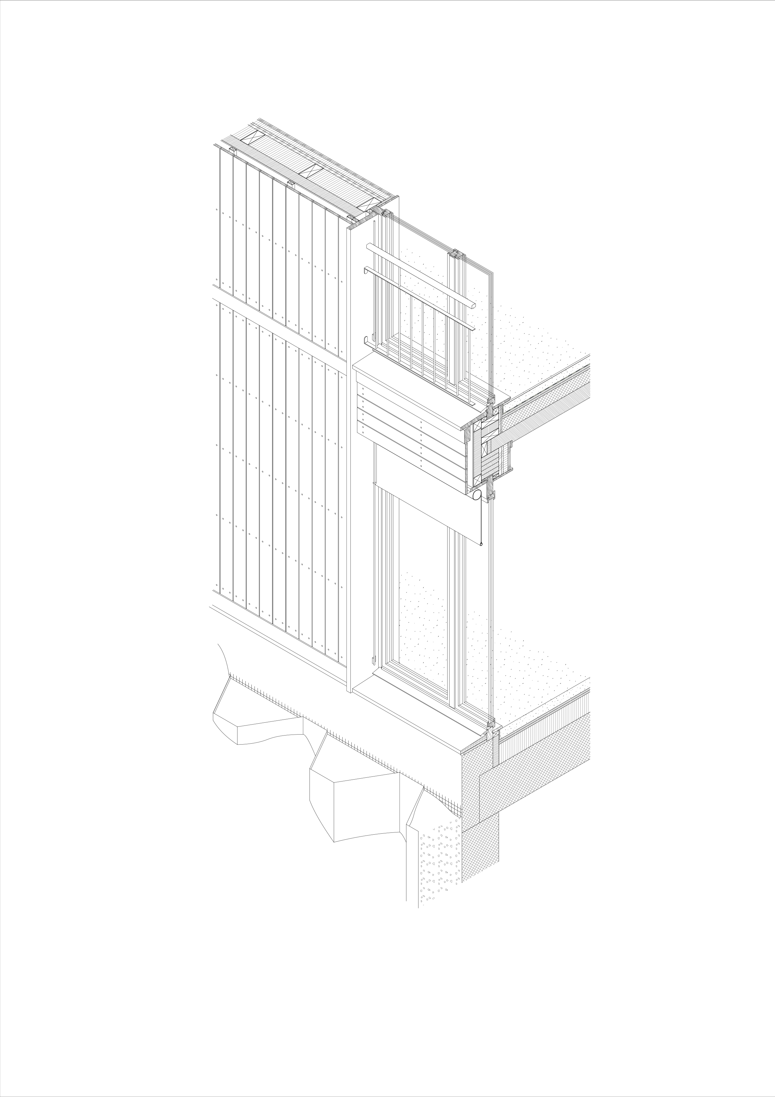 Les nouvelles constructions prolongent les logiques morphologiques existantes par le fractionnement des volumes, la diversité typologique et une échelle domestique. Les systèmes constructifs — bois, brique et terre crue issue du site — dialoguent entre eux et inscrivent le projet dans une matérialité locale, lisible et durable. Le réemploi des ressources et la gestion des eaux de pluie entièrement infiltrées à la parcelle font du sol et de l’eau de véritables infrastructures du projet.