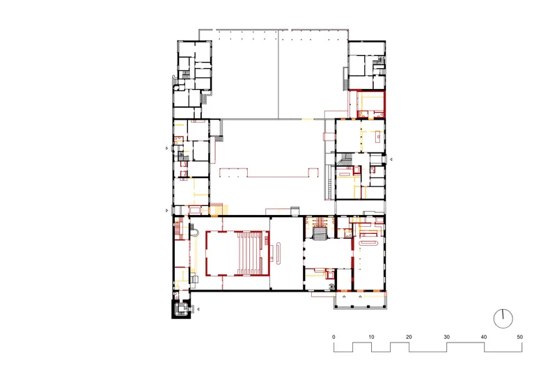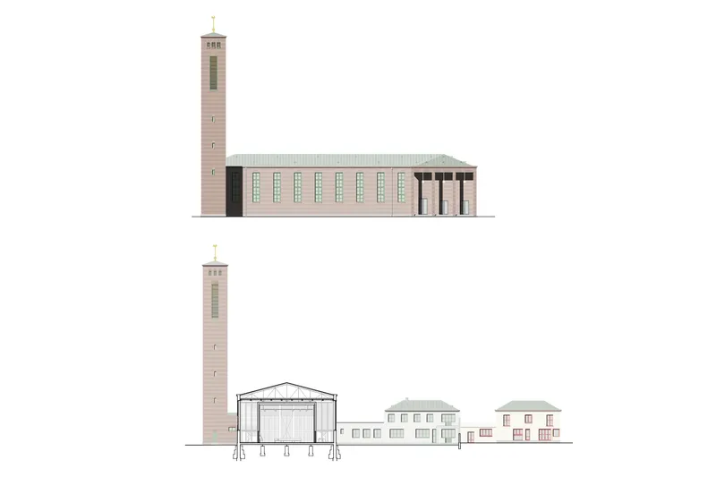 Das Gemeindehaus Oekolampad ist seit seiner Einweihung 1931 ein Ort für die Gemeinschaft und eignet sich auch heute noch für eine gemischte Nutzung durch soziale Einrichtungen und Kulturbetriebe. Der soziale Geist des ehemalig protestantischen Kirchgemeindehauses kann von profanen, gemeinnützigen Institutionen weitergeführt werden ohne grosse Eingriffe in die denkmalgeschützte Bausubstanz. Grundsätzlich folgt das Projekt der Devise, die bestehenden Vorzüge des Bestandes zu nutzen und diese wo nötig behutsam zu ergänzen. Der Einbau einer Theaterbox inmitten des ehemaligen Kirchensaals erlaubt weiterhin die Erfahrbarkeit der alten Raumdimension und schafft gleichzeitig neue, gut proportionierte Räume. Am Allschwilerplatz entsteht ein Stück ‘Fun Palace’, dank einem Raumangebot, das von ganz unterschiedlichen Menschen genutzt werden kann und ein Ort des lebendigen Austauschs wird.