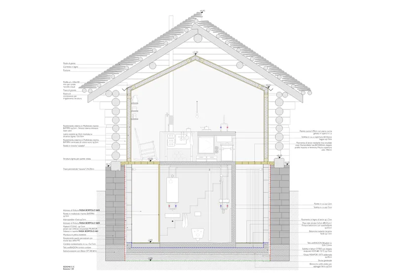 Il progetto vede la trasformazione da rustico a piccola abitazione dove tra la scatola interna perfettamente isolata e le pareti della struttura esistente è garantito il costante ricircolo dell’aria e per lo smaltimento di eventuale acqua che potrebbe depositarsi.