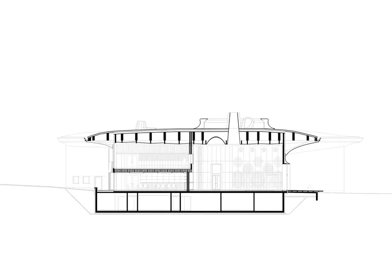 Resonierende Formen, präzises Handwerk, flirrende Schindelfassaden, ornamentale Resonanzöffnungen und poetische Lichtführung schaffen eine mehrfachsinnliche Architektur, die versucht, dem Hören über die Augen auf die Sprünge zu helfen. Innen und aussen verbinden sich Material, Struktur und Akustik zu einer verdichteten Erfahrung. Die Gestaltung soll zeitlos und lebendig wirken. Schönheit entsteht nicht aus sich selbst heraus, sondern aus dem starken Dialog mit der Landschaft, der Kultur und dem