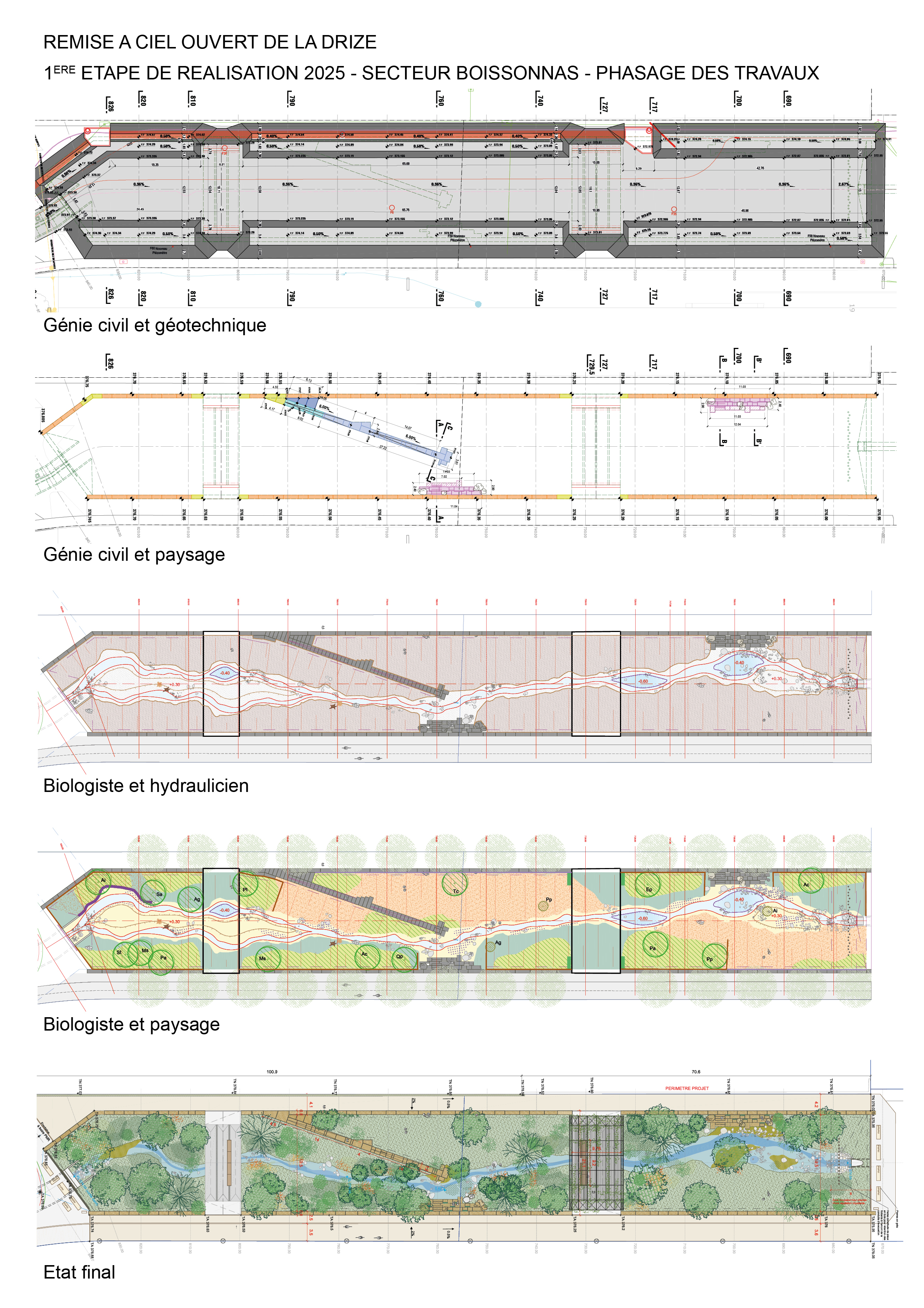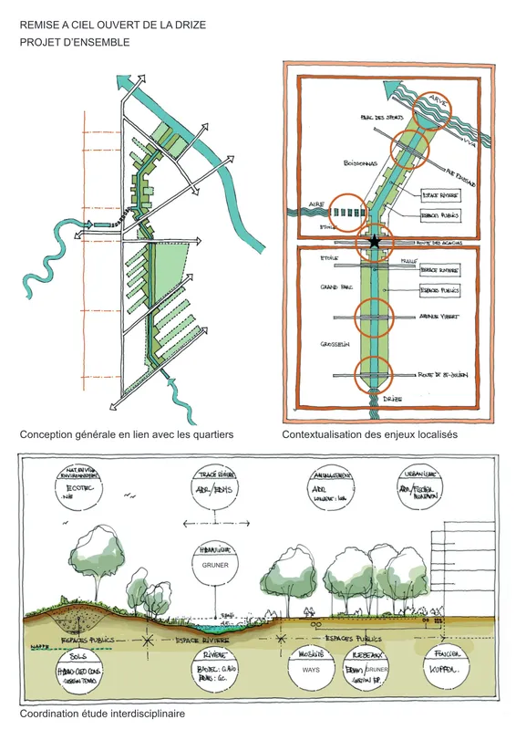 Ce projet couvre de multiples domaines : urbanisme, paysage, génie-civil, biologie, hydraulique, hydrogéologie, géotechnique, géomètre, mobilité, communication, concertation. C'est toutes ces compétences qui ont été mobilisées pour que l'eau de la Drize coule à nouveau au cœur de la ville.