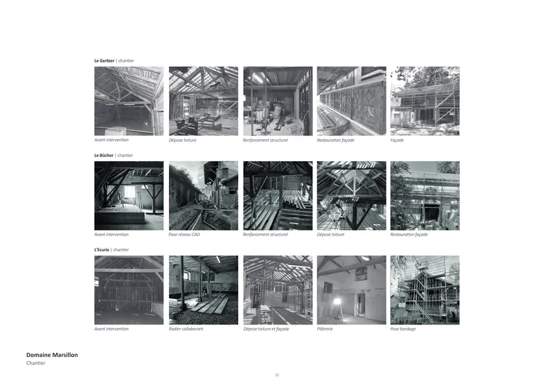 Le projet atteint le zéro artificialisation nette : toutes les interventions s’inscrivent dans le volume bâti. La production de chaleur renouvelable par biomasse a remplacé les énergies fossiles. Le réemploi des matériaux, la conservation des murs et des charpentes, la réduction des déchets et la préservation du paysage réduisent fortement l’empreinte carbone. Marsillon incarne une sobriété constructive et un usage responsable des ressources.