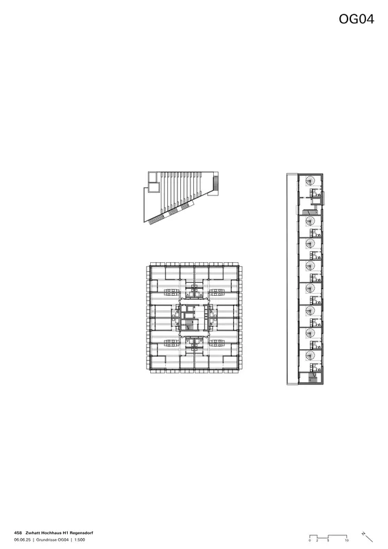 Das Holzhybridhochhaus H1 im klimabewussten neuen Stadtquartier Zwhatt nördlich von Zürich vereint den weitgehenden Einsatz regenerativer Materialien mit einer ausdrucksstarken Solarfassade. Nur das Nötigste wird massiv gebaut – Fundament, Sockel und Treppenhaus – und dank der Leichtigkeit des Holzbaus so schlank wie möglich dimensioniert. Drei gewerblich genutzte Sockelgeschosse mit ikonischer Arkade und vorgefertigter Lehmelement-Fassade tragen einen prägnanten «Tisch», auf dem der 21-geschossige Holzhybridbau steht. Seine Stützen aus Schweizer Stabbuche bilden ein Raster für optimierte Holz-Beton-Verbundrippendecken: Stabbuche-Rippen übernehmen die Zug-, schubsteif verbundene dünne Betonplatten die Druckkräfte. Da der Holzbau rund ein Drittel weniger wiegt als ein vergleichbares Gebäude in konventioneller Bauweise und entsprechend auch weniger Beton für die Fundation benötigt, entfallen insgesamt etwa 4'200 Tonnen Beton. Dies spart rund 575 Tonnen CO2 im Lebenszyklus des Hauses ein, im Holz sind 1’500 Tonnen CO2 eingelagert.
