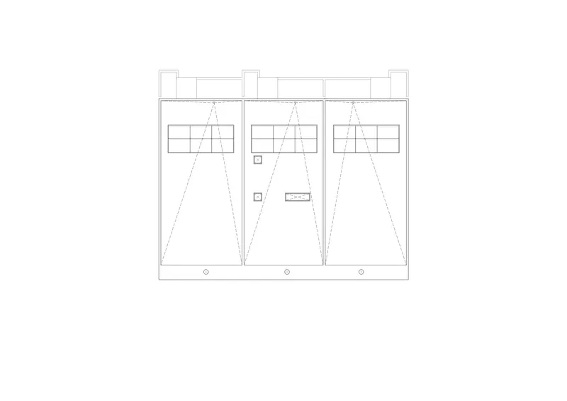 Al piano cantina sono collocati i locali tecnici e i depositi, mentre in copertura trovano spazio i pannelli solari, gli sfiati di ventilazione e, per l’unità centrale, aperture zenitali per illuminazione e ventilazione naturale.