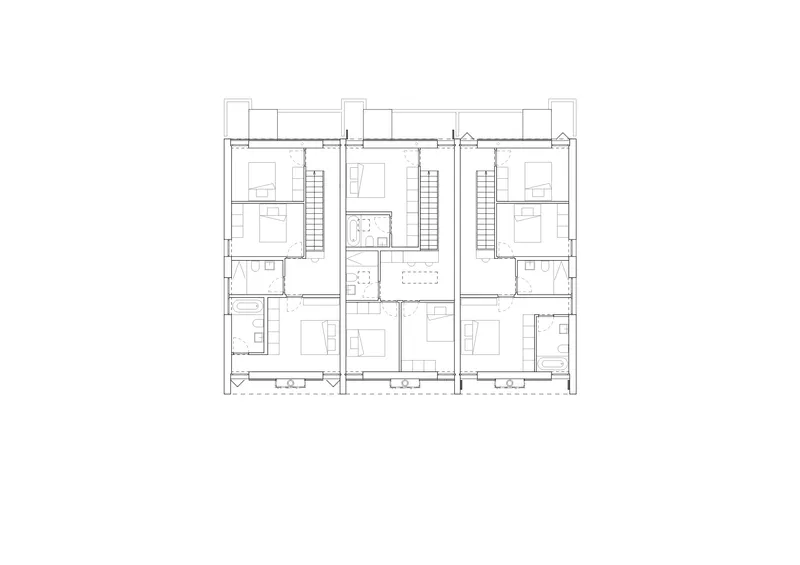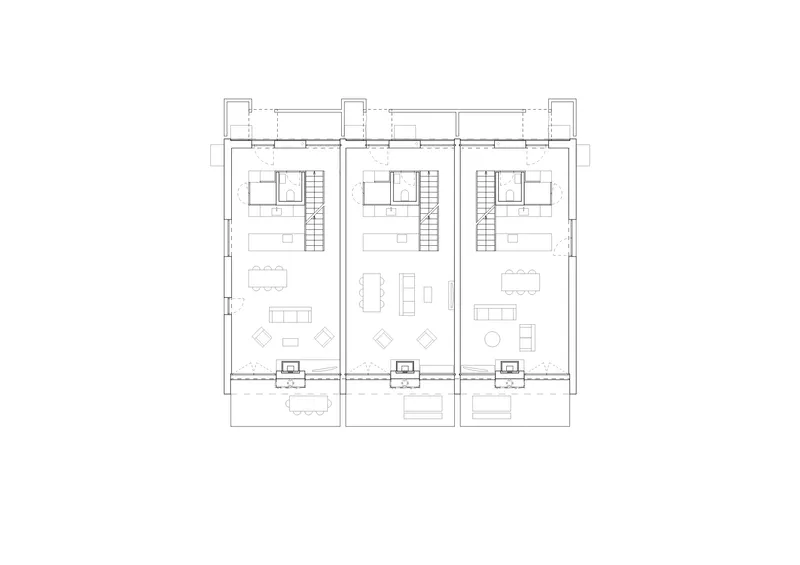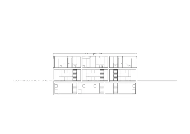 Il progetto si fonda su una razionalizzazione volumetrica e distributiva che favorisce un uso efficiente degli spazi, sia a livello abitativo sia sociale. Le tre unità sono concepite come entità autonome ma parte di un insieme coerente, capace di conciliare individualità e vita collettiva, assicurando comfort, chiarezza funzionale e una relazione misurata con il contesto insediativo circostante.