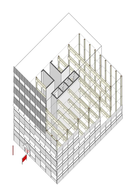 Le projet mise sur la durabilité et la valeur à long terme : matériaux robustes, structure modulable, techniques apparentes et réparables. Cette approche minimise les coûts de maintenance et optimise la durée de vie. Les plateaux polyvalents accueillant plusieurs activités permettent une occupation flexible, garantissant la pérennité économique pour le maître d’ouvrage et les locataires, tout en respectant le contexte urbain et les potentialités du site.