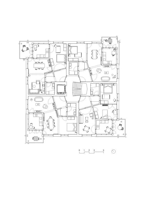 Die Wohnungen sind in der Funktion offen, vielfältig und gut nutzbar und passen sich einfach an sich wandelnde Bedingungen, Anforderungen und Nutzungsarten an. Drehbare Wände in der mittleren Zimmerschicht ermöglichen verschiedene Raumkonfigurationen. So reagiert die Wohnung auf wechselnde Lebenssituationen der Bewohner und erlaubt vielfältige Wohnformen für Einzelpersonen, Paare, Alterswohngemeinschaften und kleine Familien.