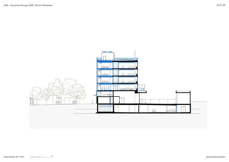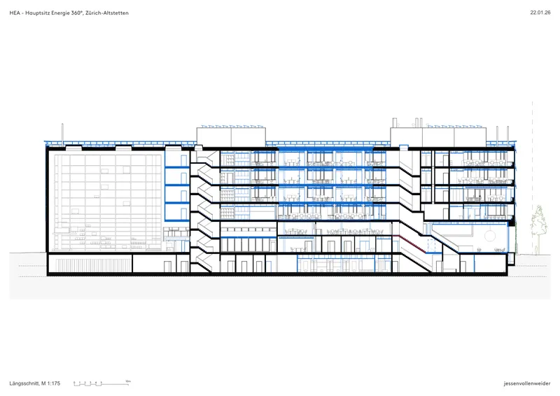 Die Projektentwicklung erfolgte in einem klar strukturierten, qualitätsgesicherten Prozess unter Federführung des Amts für Hochbauten der Stadt Zürich. Interdisziplinäre Fachplaner arbeiteten eng mit der Bauherrschaft Energie 360° zusammen. Entscheidungsgrundlagen wie Machbarkeitsstudien, Nutzeranalysen und Nachhaltigkeitsberichte stellten Transparenz, Fachkompetenz und langfristige Verantwortung sicher.