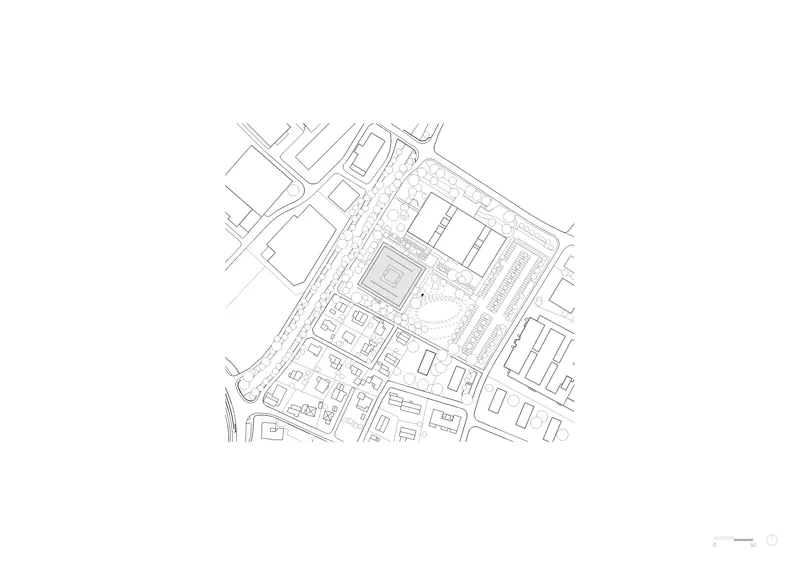 Städtebaulich fügt sich der zweigeschossige Solitär als flacher Pavillon in die kleinmassstäbliche Nachbarschaft und den Grünraum entlang der Suhre ein. Er bildet den Auftakt einer neuen Campusstruktur auf dem ehemaligen BZU-Areal und folgt einem städtebaulichen Leitbild, das freistehende Bauten vorsieht. Die architektonische Setzung respektiert die bestehenden Grünzüge und vernetzt das Areal durch neue Wegesysteme mit dem Quartier.