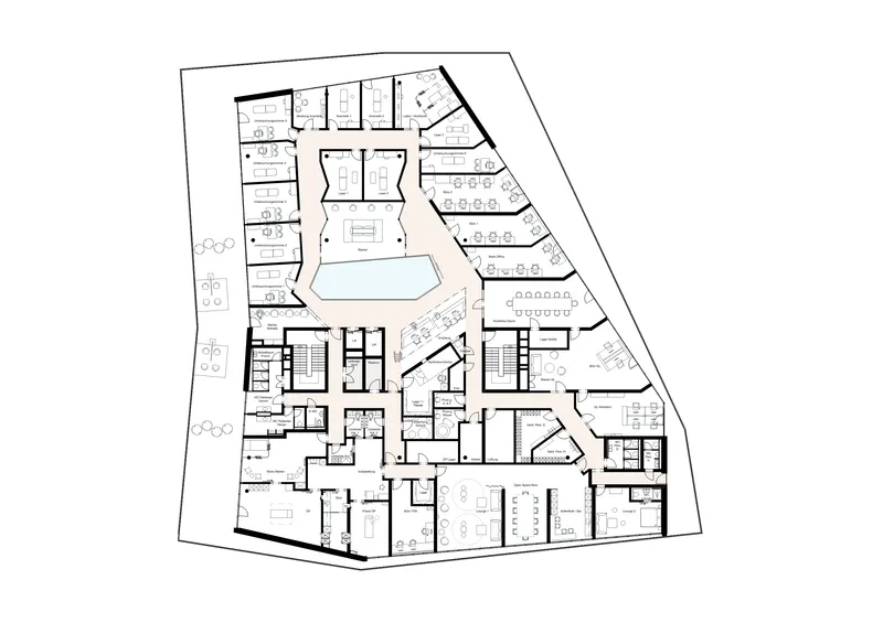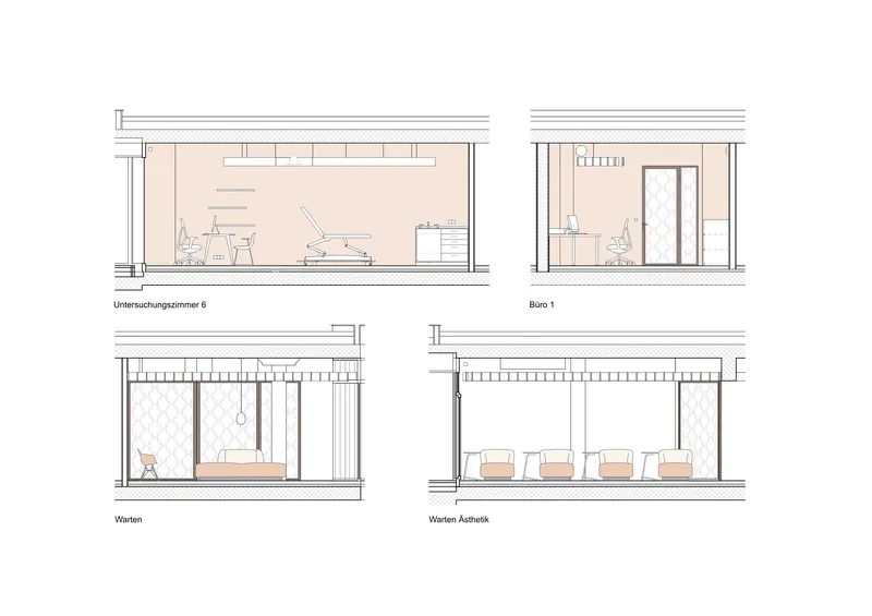 Das Projekt vereint Medizin, Kosmetik, Schulung, Arbeit und Erholung. Unterschiedliche Nutzergruppen – Patient:innen, Ärzt:innen, Mitarbeitende – finden spezifisch gestaltete, gleichwertige Räume.