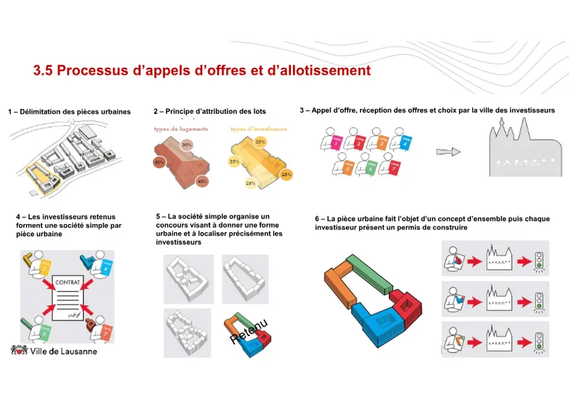 - Un appel d’offres investisseurs via lequel la Ville a attribué les lots afin de sélectionner plusieurs types d'investisseurs selon sa politique du logement