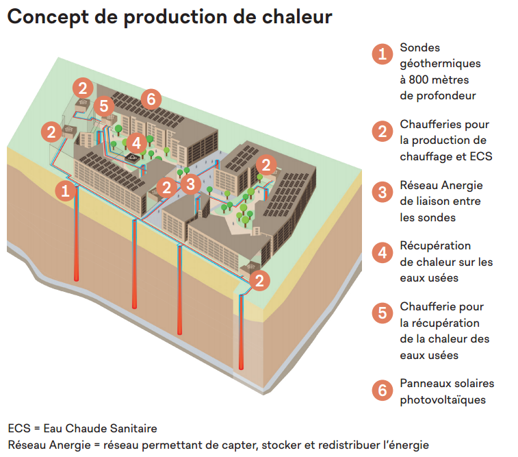 La Ville a imposé des critères aux investisseurs issus de l'outil SméO pour la réalisation de leurs bâtiments. Ces critères, plus exigeants que les règlementations, visent l'efficacité constructive, la mobilité durable, le recours aux énergies et matériaux renouvelables ou encore le respect de la société à 2000 Watts (sondes géothermiques).